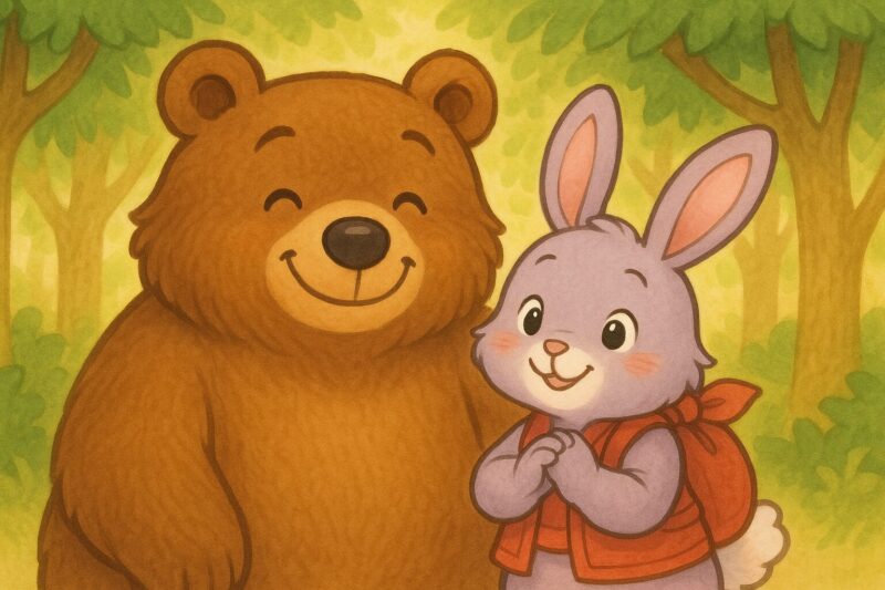 その後、森の動物たちに声をかけると、クマを仲間はずれにしないように、みんなで遊ぶことをしました。