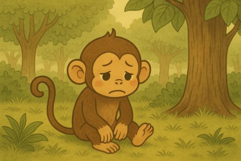 サルは、がっかりしてうなだれると、疲れたように道端に座りこんでしまいました。