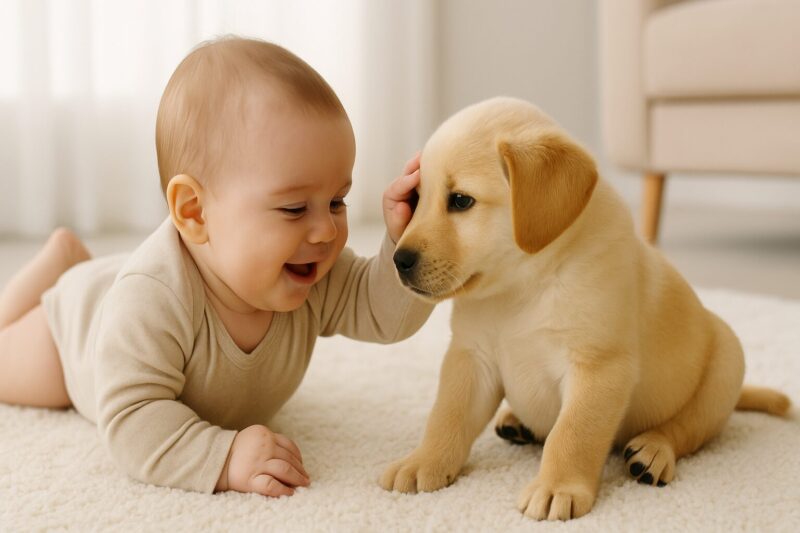 「赤ちゃんんと子犬」には、癒しというテーマがしっかり隠されています。