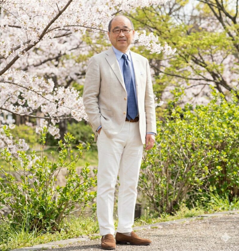 私の写真に、春先に着る洋服をコーディネイトしてほしいと指示を出したところ、右の写真のようなものを生成してくれました。