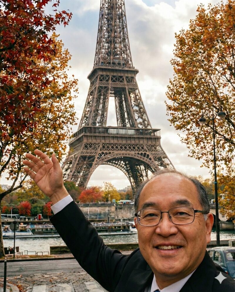 「この写真の人物を、パリのエッフェル塔に観光したような写真に作ってください」と指示を出したところ、以下のような写真が出来上がってきたのです。