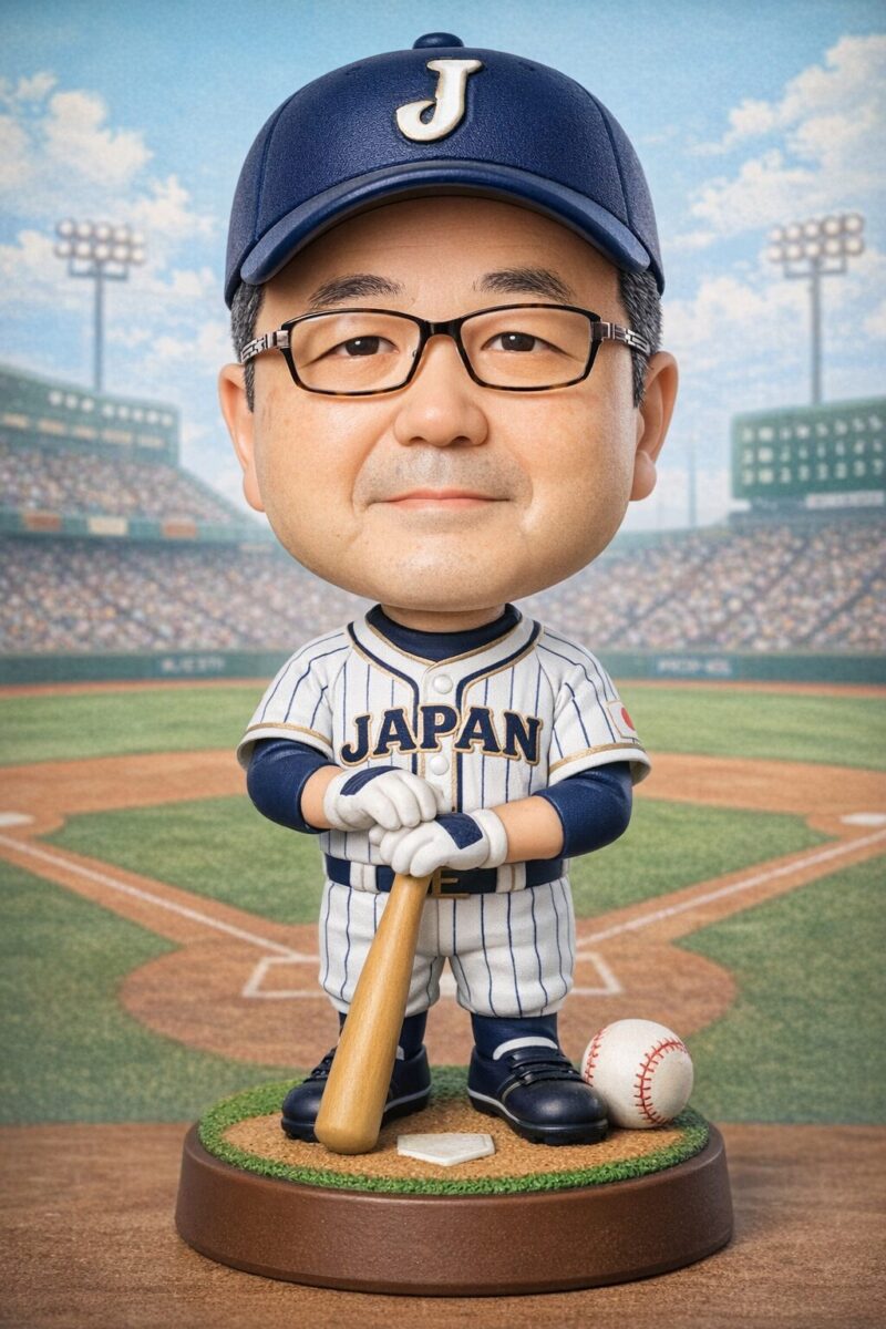 今回のChatGPT Imageの野球ボブルヘッド人形に処理するというのは、「頭を大きく誇張して重心が上にあり、顔の個性は残しつつ、特徴をシンプルに、肌は滑らかなマット塗装のビニールで、毛穴や生きているような質感は出さないでください」といったようなプロンプトはなかなか素人では書けなかったからです。